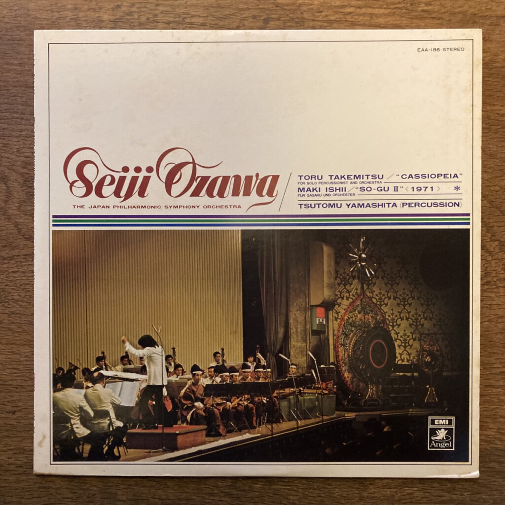 小澤征爾指揮による日本フィルハーモニー交響楽団をバックに、パーカッショニスト ツトム・ヤマシタ(山下勉)をフィーチャーした、緊迫感溢れる録音。