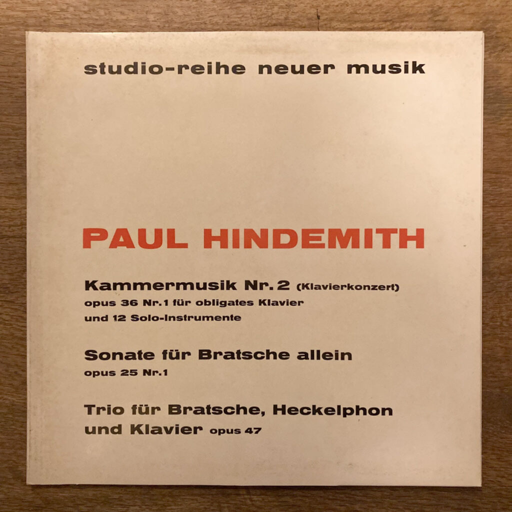 後期ロマン派の過剰な情緒を否定し、バロック時代の形式を現代的に再解釈した20世紀ドイツを代表する作曲家Paul Hindemithの代表曲を3曲収録。ピアノと12の独奏楽器 A面 Kammermusik Nr.2 (Klavierkonzert) Op.36 Nr.1。ヴィオラ独奏のB1。ヴィオラ、ヘッケルフォン、ピアノの三重奏のB1。